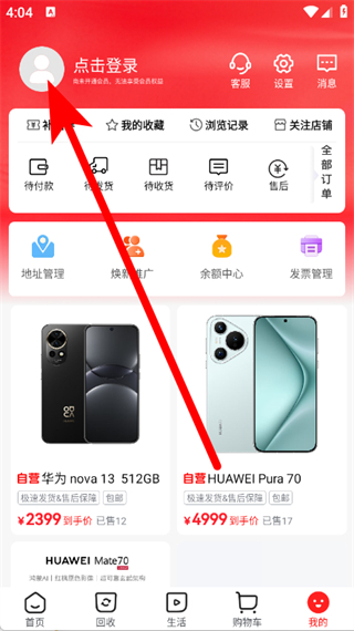 2、在我的頁面,點擊點擊登錄,進入登錄頁面。