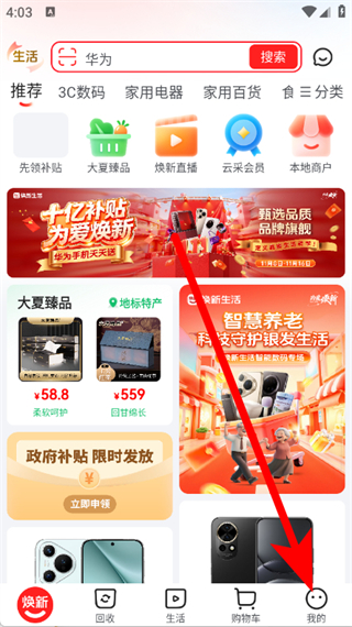 1、打開煥新生活,點擊底部導航欄我的,進入我的頁面。
