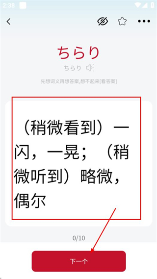 3、學習完當前詞匯后點擊下一個按鈕,可繼續(xù)學習下一個詞匯。