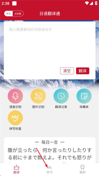 1、在日語翻譯通首頁,點擊底部學習選項,進入學日語頁面。