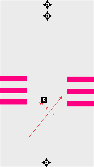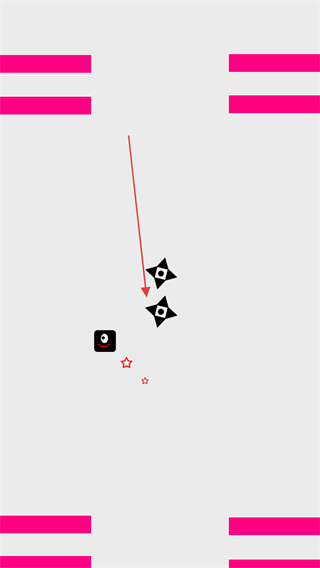 1、操控黑色方塊沿紅色軌跡移動,收集星星,躲避粉色障礙。