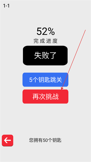 4、失敗后可選擇再次挑戰(zhàn)按鈕,重新開始本關卡,繼續(xù)嘗試通關。