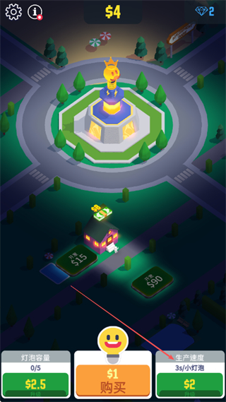 1、花費$1購買燈泡建筑,開啟城市建設(shè)。