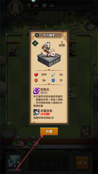 3、當獲得的同等級的同種角色數(shù)量達到三個就可以進行升級進化,點擊角色進入信息頁面點擊下方的升級按鈕進行進化。