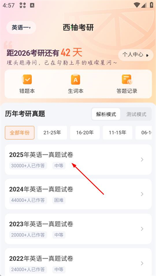 專注考研英語單一賽道,功能與內容高度聚焦應試需求,剔除無關冗余模塊,讓考生集中精力突破核心考點。